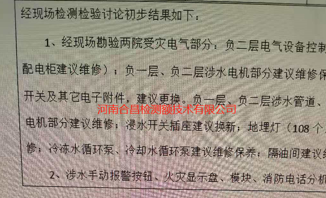 因受郑州7.20特大暴雨影响,某单位地下进水,导致两个配电室进水,设备被水淹没高度达1.93米,设备㓎泡4天,供配电控制柜受损严重,目前积水已排完,室内地面及墙体未干燥。高压配电设备对电气元件、柜体、附属配件的绝缘等级及运行可靠性要求高,一旦发生事故可能会造成重大财产损失或人身伤亡事故,故该单位委托 江苏环谱检测技术服务有限公司 对水淹设备进行安全性检测,出具设备受灾抢修方案。